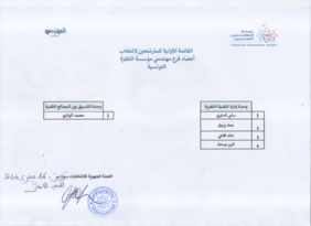 القائمة الأولية للمترشحين لانتخابات فرع مهندسي التلفزة الوطنية التونسية