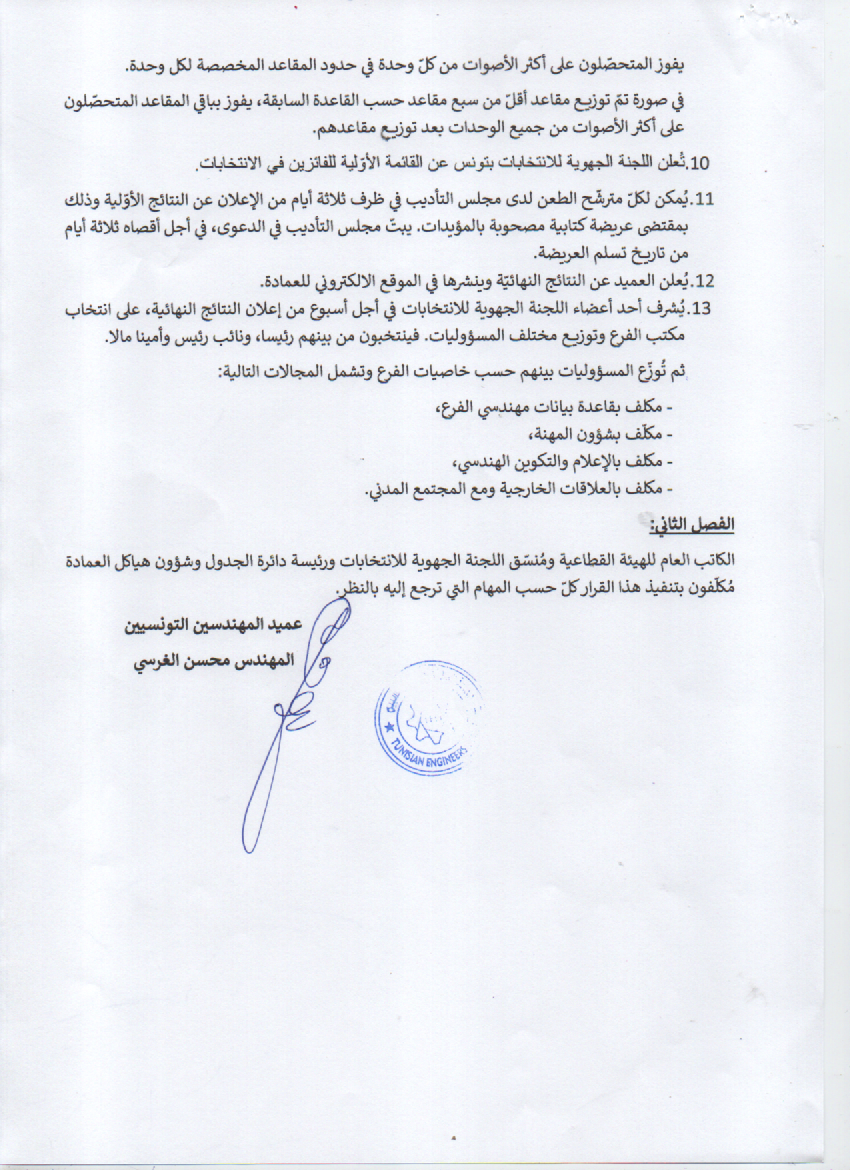 قرار انتخابات فرع مهندسي الوكالة الوطنية للتبغ والوقيد