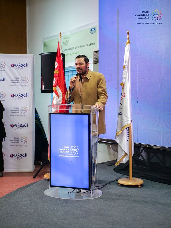 شارك المهندس لطفي الحراثي نائب عميد المهندسين التونسيين في اليوم الدراسي الذي نظمته الهيئة الجهوية لعمادة المهندسين التونسيين بسوسة، يوم 11 فيفري 2026 بالمعهد العالي للعلوم الفلاحية بشط مريم، وذلك بمناسبة الاحتفال باليوم العالمي للمرأة والفتاة في مجال العلوم المدعوم من UNESCO تحت عنوان: "المرأة، العلوم وريادة الأعمال: الجرأة على الابتكار والمبادرة".